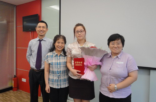 5月28日下午,国康召开会议为本次当选的“爱心大使”颁奖,首先是董事长杨华山致开幕词,倡导各级管理者需将对爱心天使的关怀渗透到日常工作点滴之中, 并强调爱心天使服务客户,国康其他同事服务爱心天使,这便是管理者的工作目标。其次由客服负责人一一揭晓“爱心大使”名单,他们分别是国康北京分公司杨千惠、 杭州分公司尹艳霞、上海分公司贾影珍、广州分公司袁宇平、成都分公司严海燕、深圳分公司莫晓燕、健康中心纪小慧,宣读各位大使的优秀事迹,并由国康领导为他们授予荣誉证书、赠与鲜花与礼品。各位天使也分享了自己的获奖感言和工作经历,感言中充满对公司认可的感谢,对公司文化的认同及未来和公司一起发展的信 心与决心,令在座同事感动不已。