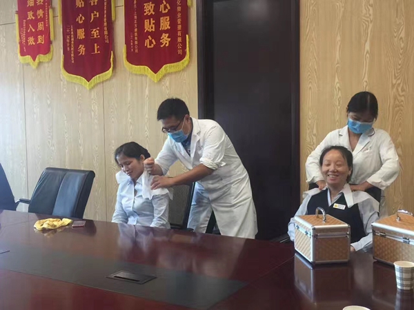 2017年7月25日上午,国康.康管家携手怡化金融科技大厦怡化物业为企业送健康,上门为员工举办推拿理疗体验活动。